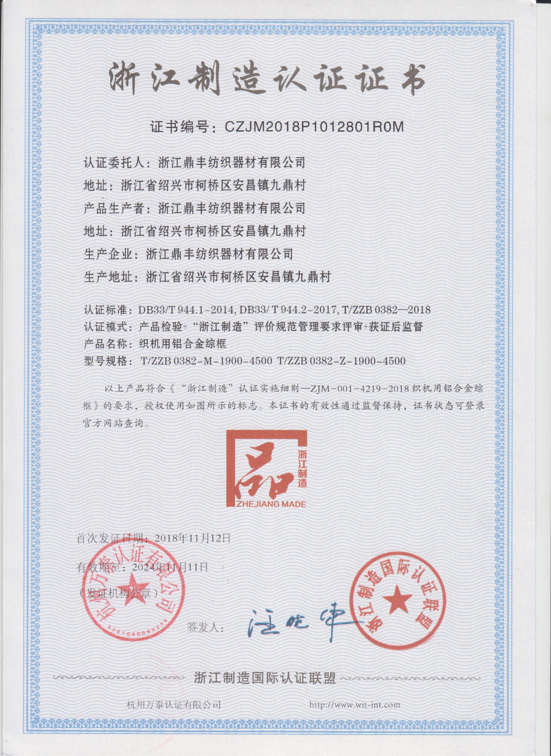 1、貴公司是一家專(zhuān)業(yè)生產(chǎn)各類(lèi)無(wú)梭織機(jī)鋁合金鋼筘、綜框、鋼片綜、停經(jīng)片、經(jīng)軸、織軸和卷布輥等產(chǎn)品及配件的民營(yíng)企業(yè)。公司成立30多年迅速發(fā)展、占領(lǐng)市場(chǎng)的秘決是什么?余定雅:是高品質(zhì)的產(chǎn)品,完善的售后服務(wù)和大規(guī)模的生產(chǎn)能力保證了浙江鼎豐紡織器材有限公司的產(chǎn)品銷(xiāo)售量在國(guó)內(nèi)獨(dú)占鰲頭。為了與全球市場(chǎng)經(jīng)濟(jì)接軌,鼎豐紡